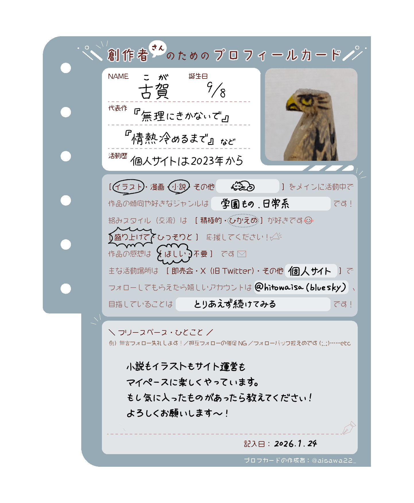 あまり新規の小説やイラストを載せられないのでMemoの投稿もサイトの更新に含めようと思います。